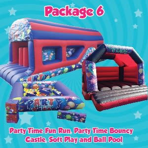 The hugely popular inflatable party package for kids under 5 we reckon - a junior fun run / assault course with slide and bounce area along with a matching party theme boucy castle and our amazing matching 17 piece soft play set and ball pool and over 1000 balls! When you hire this package, you wll have an easy party as the kids won't stop playing on the fun run!