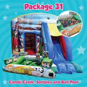 This bouncy castle combi slide and soft play and ball pool package deal is perfect for any boys or girls party - you can choose from our 3 combi castles. The Combi castles are perfect for the younger age group as the slide is not too tall and there is still a large bounce area. We would recommend for kids under the age of 7, but they are many older kids who still have fun on them!