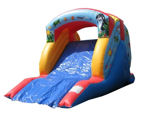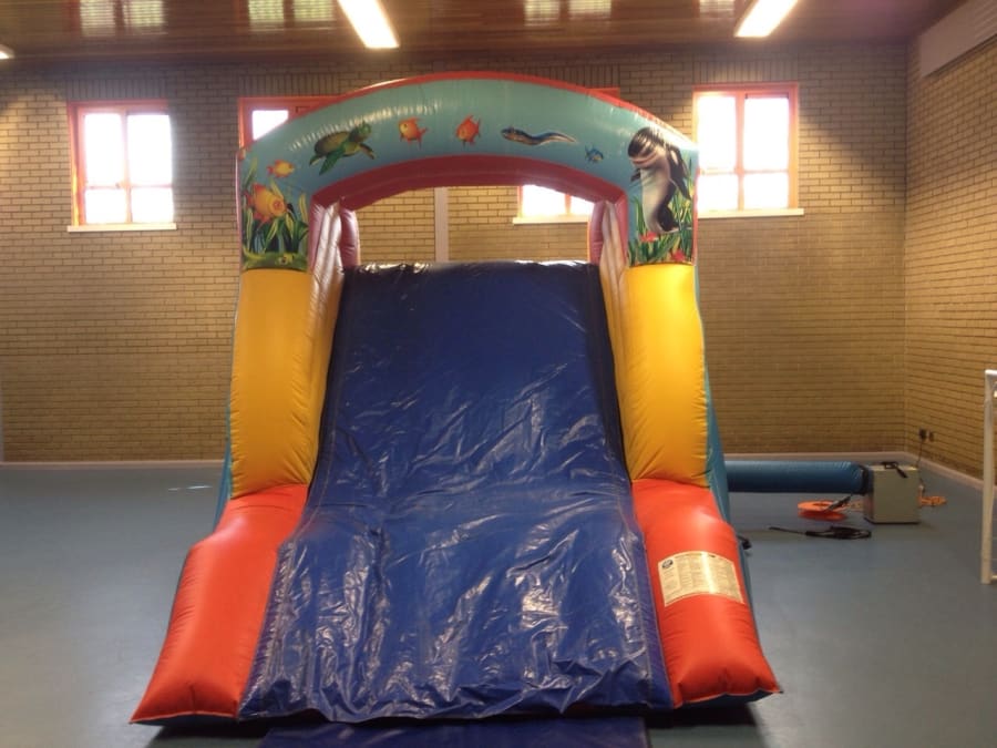 Our undersea themed garden slide is a great slide on its own or with a package deal with another castle. With steps up the back, the kids can climb to the top before sitting under the hood and sliding to the bottom. This slide has a 6ft platform and is 10ft high in total so fits inside most halls also.