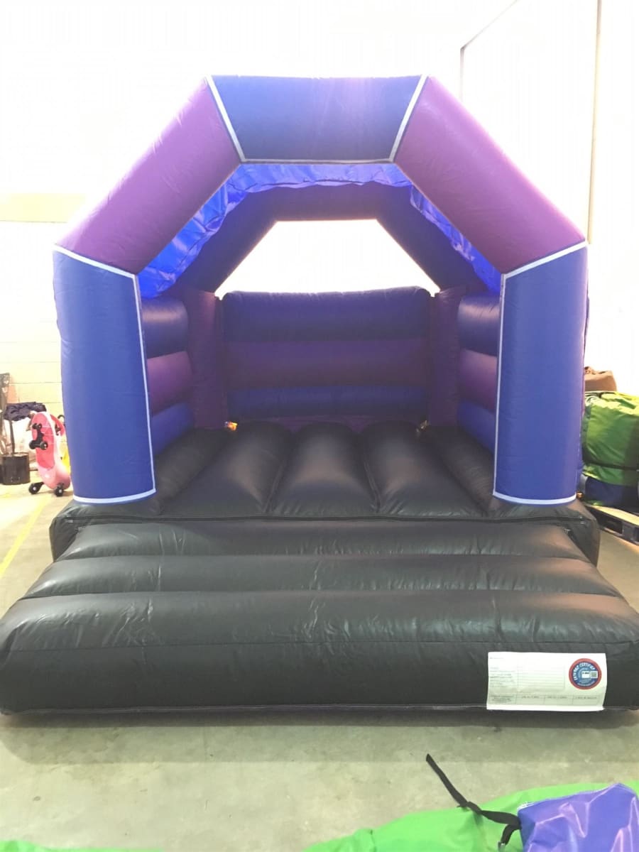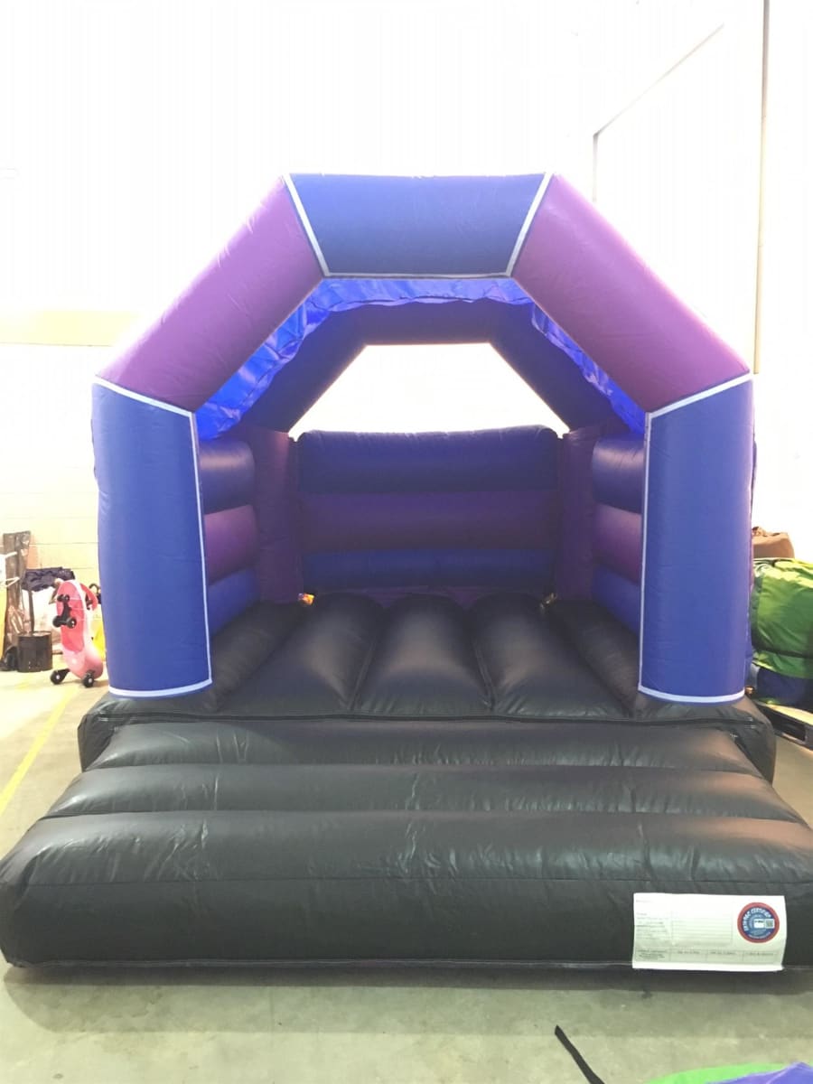 Our plain Purple, Blue and Black Bouncy Castle is perfect for all kids parties. Perfect in size to host parties for around 10 -12 kids and for those with a slightly smaller garden space.