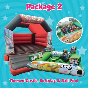 This bouncy castle package deal is perfect for any boys or girls party, especially if you have older and younger kids/babies at the party - you can choose from a wide range of velcro themes and have them put onto any of our base castles.